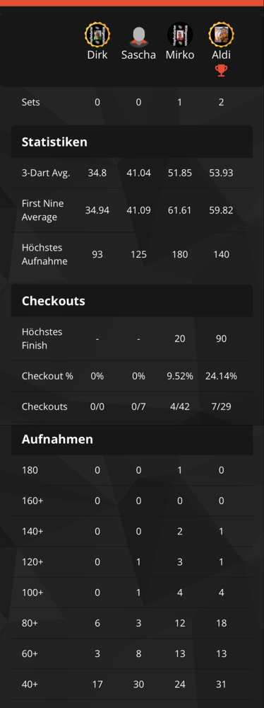 Statistiken Training gesamt